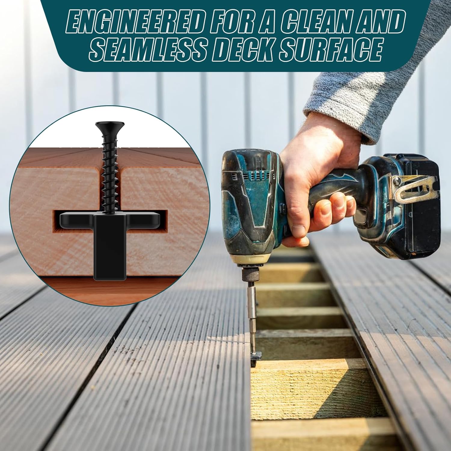 Easy Installation for Decks – These hidden fasteners are designed for seamless installation on composite decking boards. With 100 PCS per set, they simplify your deck project and create a smooth, nail-free surface