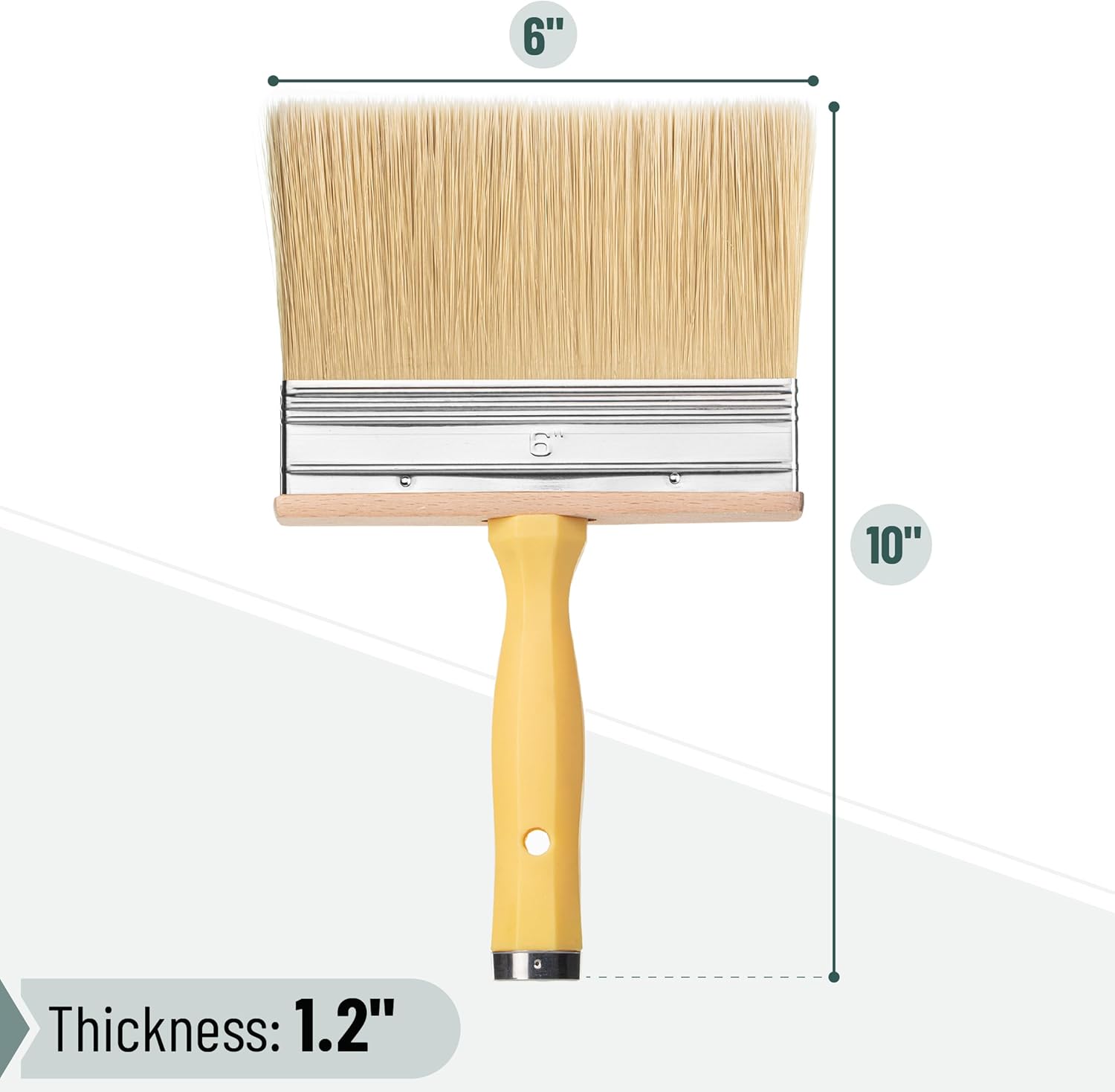 Bates deck stain brush features a wide 6-inch brush head, perfect for covering large surfaces quickly and efficiently.